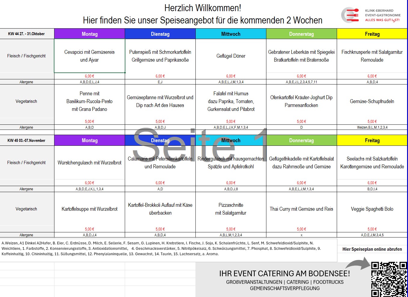 Auf dieser Seite sehen sie den Speiseplan für die kommenden 2 Wochen für ihre Betriebsverpflegung.
